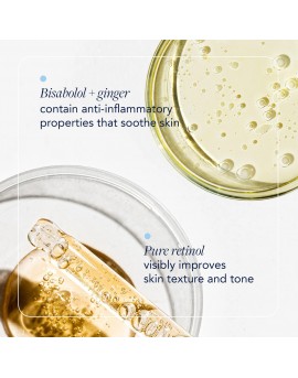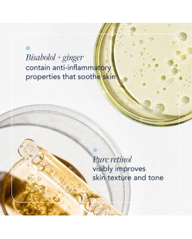 Bisabolol + ginger: Known for their anti-inflammatory properties, bisabolol and ginger work synergistically to soothe skin, reduce redness and protect against irritation, making retinol gentler on skin.