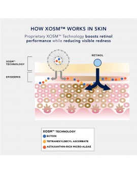 XOSM™ Technology: Propriety, patent-pending technology that boosts the performance of retinol while protecting and nourishing the skin’s barrier with smart-encapsulated antioxidants ectoin, vitamin C and astaxanthinrich micro-algae.