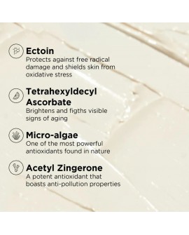 Aqua/Water/Eau, Cyclopentasiloxane, Dicaprylyl Carbonate, Polyhydroxystearic Acid, Dimethicone, Glycerin, Lecithin, Isohexadecane, Aloe Barbadensis Leaf Juice, Polyglyceryl-3 Polydimethylsiloxyethyl Dimethicone, Dimethicone/PEG-10/15 Crosspolymer, Triethoxysilylethyl Polydimethylsiloxyethyl Hexyl Dimethicone, Magnesium Sulfate, Heptahydrate, Acetyl Zingerone, Phenoxyethanol, Caprylic/Capric Triglyceride, Caprylyl Glycol, Ethylhexylglycerin, Hexylene Glycol, Hydroxyethyl Acrylate/Sodium Acryloyldimethyl Taurate Copolymer, Squalane, Phosphatidylcholine, Mannitol, Vanilla Planifolia Fruit Extract, Camellia Sinensis Leaf Extract, Methyl Propanediol, Sodium Hyaluronate, Dipropylene Glycol, Polysorbate 60, Ectoin, Sodium Citrate, Sorbitan Isostearate, Tocopherol, Stearic Acid, Palmitic Acid, Haematococcus Pluvialis Extract, Tetrahexyldecyl Ascorbate, Panthenol, Phenylpropanol, Sodium Benzoate, Potassium Sorbate.